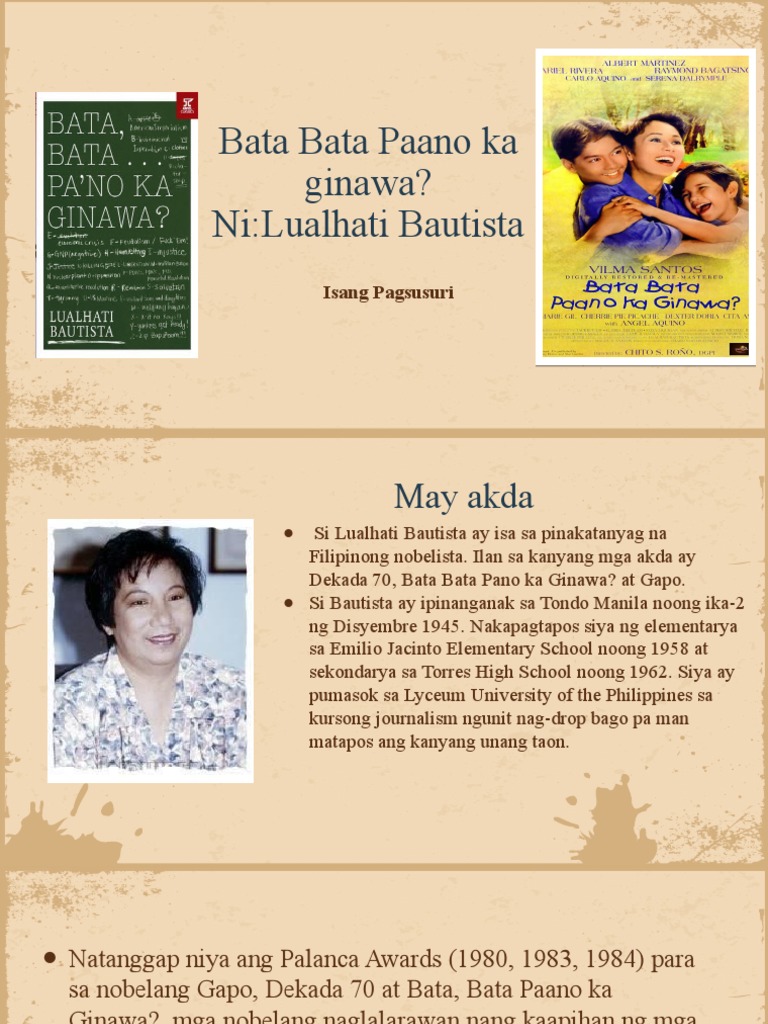 05082016 Magagawa ko ito sa pamamagitan ng pag-aaral nang mabuti at pag-iwas sa bisyo o sa anumang masasamang gawain katulad ng sugal. Nobelang isinulat ni Lualhati Bautista. Dahil sa pag-aalinlangan ay ginawa ng mali si Michael naging tunggaliang Tao vs sarili ito sa pagkat Hindi siya nag tiwala sa kanyang sarili at naniwala na may mabuti pa sa mga amerikanong sundalo.