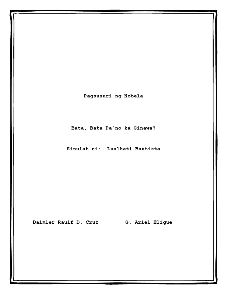 Bata bata paano ka ginawa pagsusuri ng nobela. She possesses a liberal outlook and an unparalleled affection that enables her to properly raise. For any woman to have two children from two different men is an ordeal but womens rights advocate Lea Vilma Santos is not just any woman. Ilan sa mga nobela niya ang.
