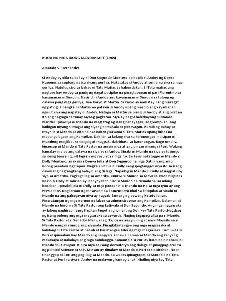 Amado V Hernandez Home. BUOD NG MGA IBONG MANDARAGIT 1969 Amando V. Hernandez Si Andoy ay alila sa bahay ni Don Segundo Montero.