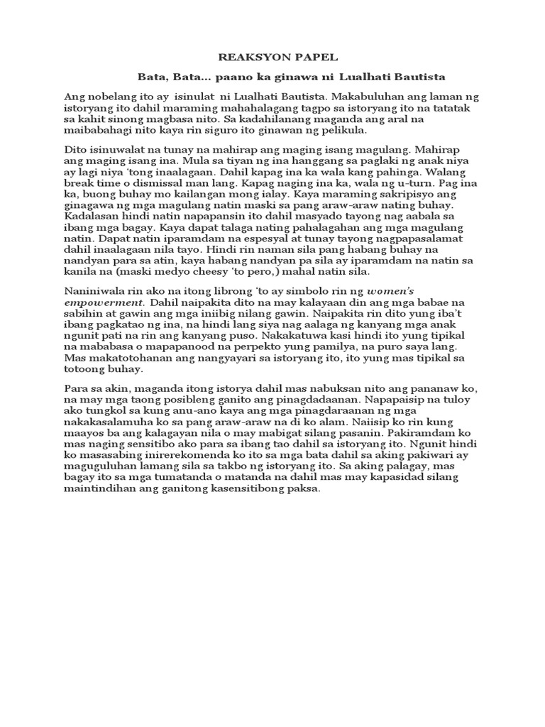 Bata Bata Pano Ka Ginawa Reaksyon Papel Pdf