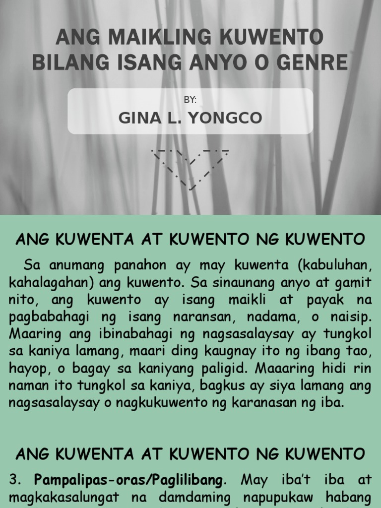 Ang Maikling Kuwento Bilang Isang Anyo O Genre Pdf
